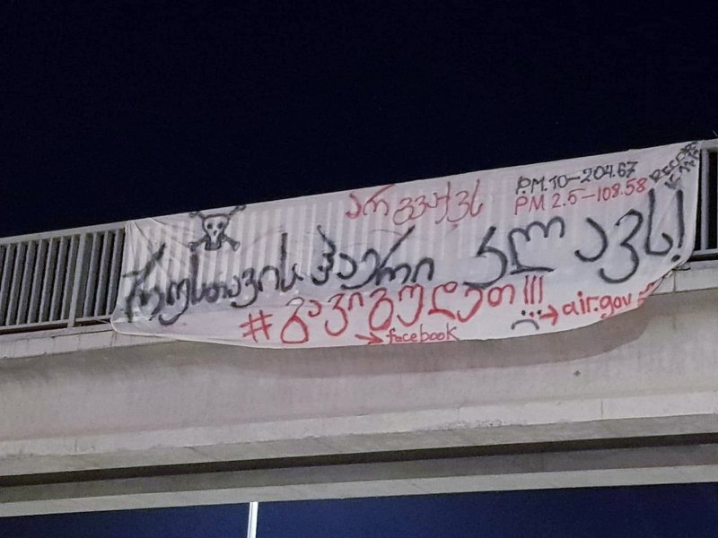 "რუსთავის ჰაერი კლავს" - ასეთი წარწერით ბანერი, რუსთავის შემოსასვლელში გამოჩნდა.
