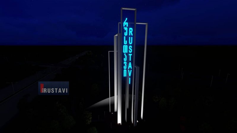 წარწერა "რუსთავი" 2 ენაზე, ქართულად და ინგლისურად, 30 მეტრის სიმაღლის კონსტრუქციაზე დამონტაჟდება.
