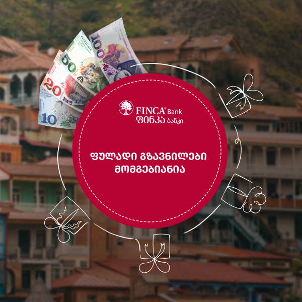 *აქცია ვრცელდება მხოლოდ საერთაშორისო ფულად გზავნილებზე. დამატებითი ინფორმაცია იხილეთ ფინკა ბანკის ვებ გვერდზე www.FINCA.ge