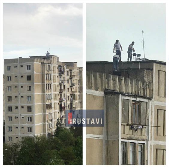 მრავალსართულიანი საცხოვრებელი კორპუსის სახურავზე რამდენიმე მამაკაცი ქეიფობს. ფოტო "ინფო რუსთავს" გვერდის მკითხველმა ლევან ქართველიშვილმა მიაწოდა. ავტორთან საუბარში გაირკვა რომ ფოტო გადაღებულია ვარკეთილში, ცხრა სართულიანი სახლის სახურავზე. ფოტოზე ჩანს რომ მამაკაკებმა სახლის სახურავზე მაგიდა და სხკამები აიტანეს და ქეიფობენ, თვალსაჩინოა ის ფაქტი რომ სახურავს არც რკინის მოაჯირი აქვს და არც ბეტონის ჯებირი.