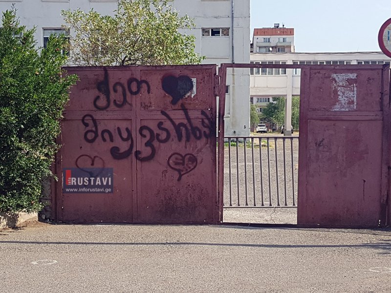 რუსთავის საგამოცდო ცენტრის კარებზე წარწერა "ქეთ მიყვარხარ" გამოჩნდა.
