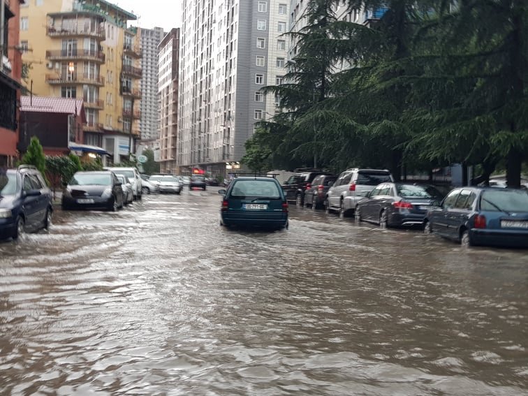 ბათუმში უხვი ნალექის გამო დემეტრე თავდადებულის, შერიფ ხიმშიაშვილის, შავშეთის, ლერმონტოვისა და ჭავჭავაძის ქუჩები დაიტბორა.