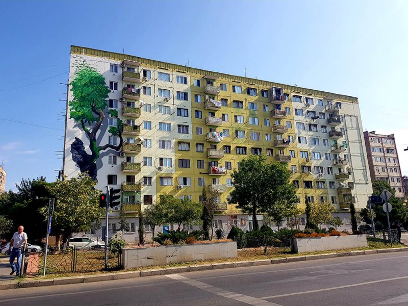 რუსთავში, შარტავას გამზირზე ერთერთი საცხოვრებელი კორპუსის კედელი "გაიბზარა" და "ნაპრალიდან" ხე ამოვიდა.