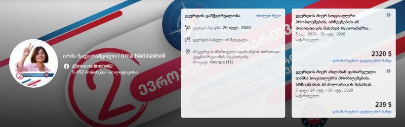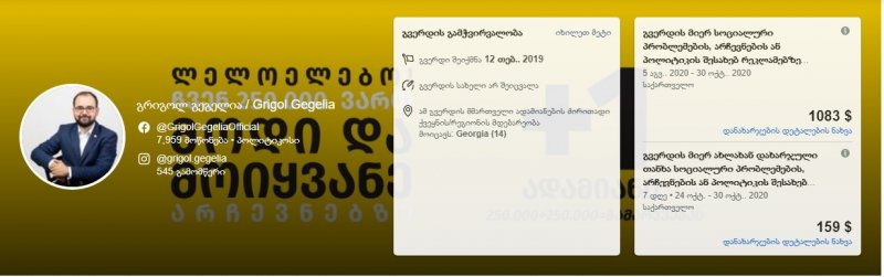 საინფორმაციო სააგენტო "ინფო რუსთავი" გთავაზობთ მონაცემებს, თუ რა თანხა დახარჯეს რუსთავის მაჟორიტარი დეპუტატობის კანდიდატებმა ფეისბუქ რეკლამაში წინასაარჩევნო პერიოდში.