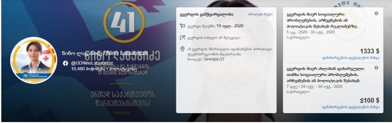 ნინო ლაცაბიძე - 1333 $, დამფინანსებელი პარტია "ქართული ოცნება"
