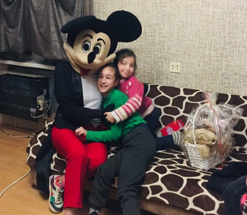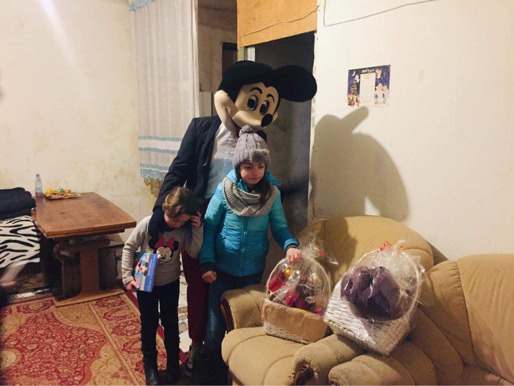 ახალგაზრდებმა 13 ოჯახში შეზღუდული შესაძლებლობის მქონე ბავშვები მიკი-მაუსის ფორმაში გამოწყობილ ანიმატორთან ერთად მოინახულეს.