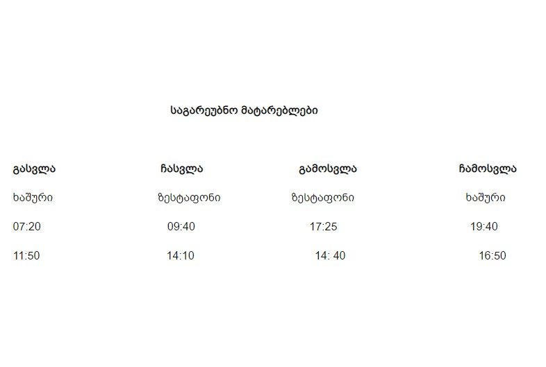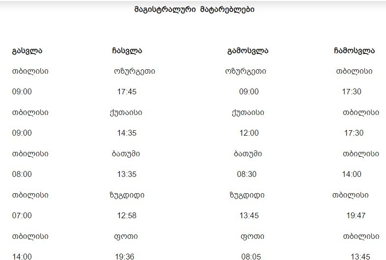 იხილეთ მატარებლების მოძრაობის განრიგი.