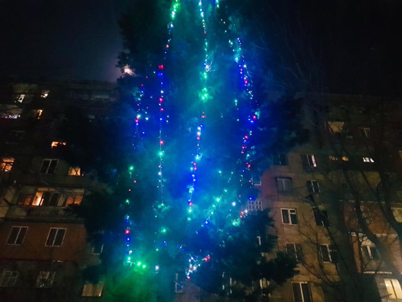 გარდა იმისა, რომ ადამიანები საახალწლოდ საკუთარ სახლებსა და აივნებს რთავენ, სადღესასწაულო განწყობა რუსთავის ეზოებშიც იგრძნობა.