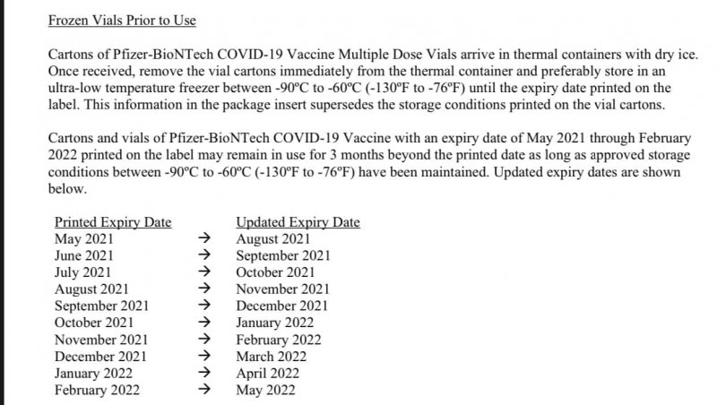 "ერთი სანერვიულო თემა მოხსნილია, ვაქცინები აღარ გვიფუჭდება FDA – იმ 22 სექტემბერს ოფიციალურად დაადასტურა, რომ ფაიზერ/ბიონტეკის ვაქცინას მითითებული ვარგისიანობის ვადა გაუხანგრძლივდა 3 თვით!