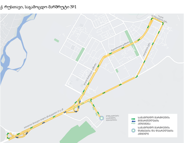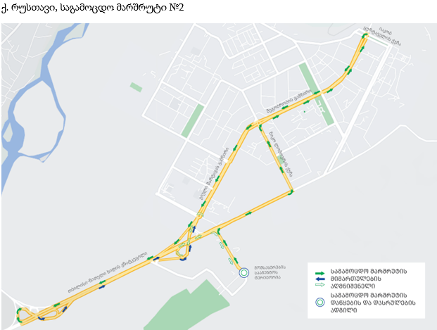 - მეორე მარშრუტი: მომსახურების სააგენტო → ნიკო ლომოურის ქუჩა → მეგობრობის გამზირი → იაკობ ცურატაველის ქუჩა → მეგობრობის გამზირი → ჟიული შარტავას გამზირი → თბილისი წითელი ხიდის გზატკეცილი → მომსახურების სააგენტო