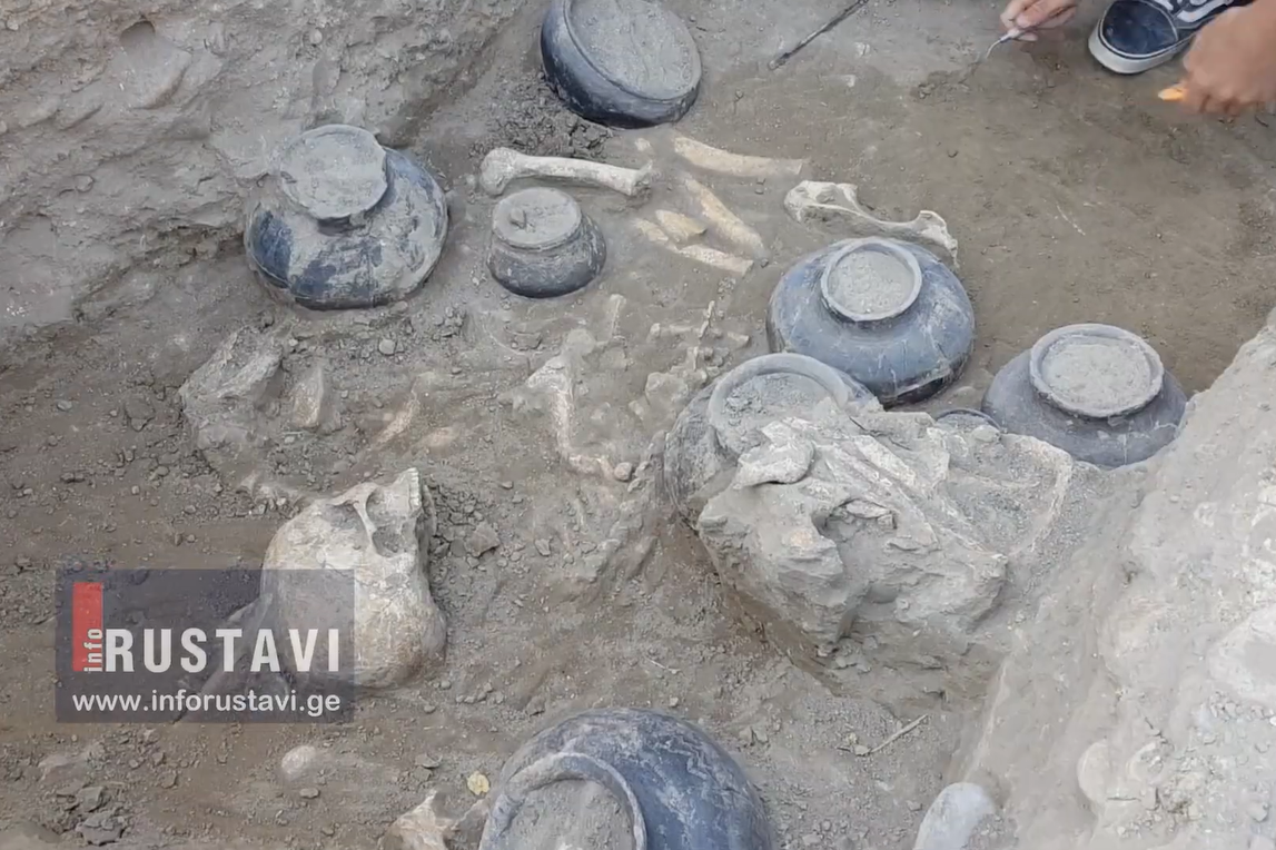 ადამიანის ნეშტთან ერთად ნაპოვნია სხვადასხვა ფორმის, ზომის და ორნამეტებით შემკული თიხის ჭურჭელი და შეწირული ცხოველების ნეშთები.