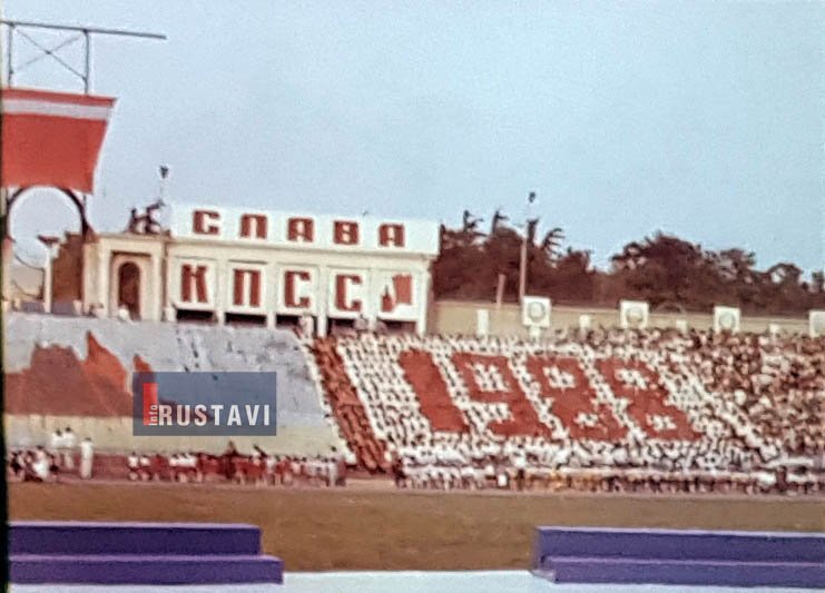 სადღესასწაულო ღონისძიების ფარგლებში ქალაქის მთავარი სტადიონის ტრიბუნაზე საიუბილეო თარიღი 1988 გამოსახეს.