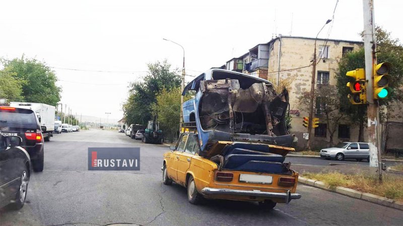 ცენტრალურ ქუჩაზე "ჟიგულის" მარკის მძღოლი ყოველგვარი უსაფრთხოების ნორმების დაცვის გარეშე გადაადგილდებოდა. ავტომობილს სახურავზე დადებული ჰქონდა ასევე "ჟიგულის" მარკის დაჭრილი და დაშლილი ავტომობილი. მძღოლი სავარაუდოდ იმ ადგილისკენ მიდიოდა სადაც ჯართს იბარებენ.