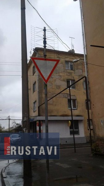 რუსთავის ერთ-ერთი ქუჩა, საგზაო ნიშანზე ტელევიზორის ანტენა არის დამაგრებული. ფოტო გვერდის მკითხველმა მოგვაწოდა.