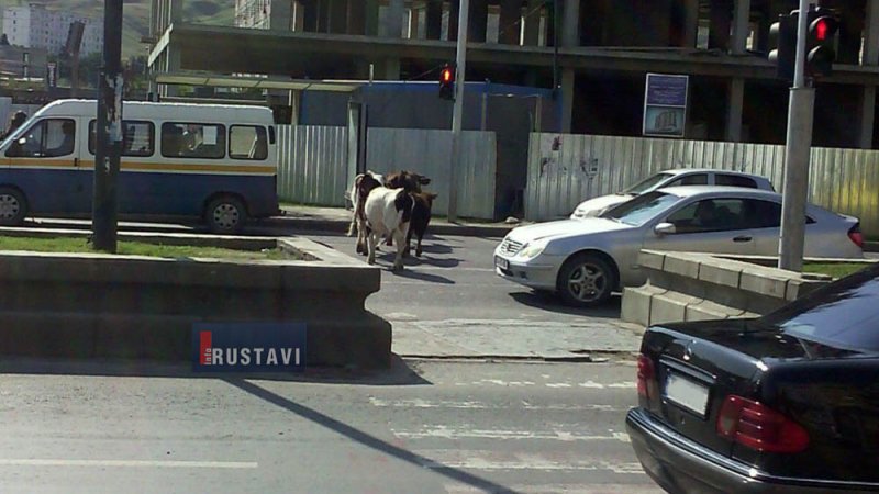 შარტავას გამზირზე, ქვეითთათვის განკუთვნილ გადასასვლელზე პურუტყვი გადაადგილდება. ფოტო სოციალურ ქსელში გავრცელდა.