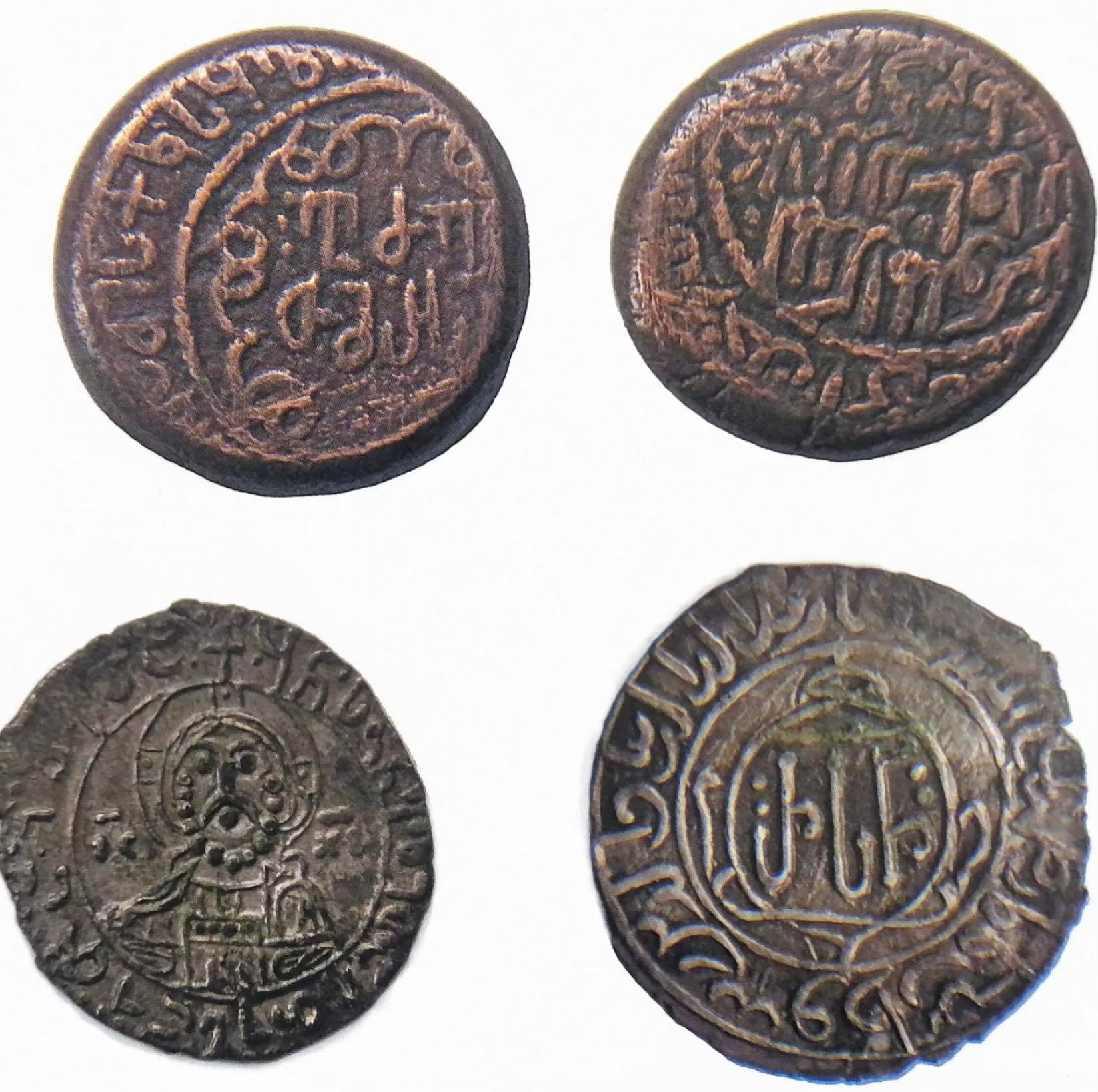 თამარ მეფის სპილენძის მონეტები, ასევე თამარისა და დავით სოსლანის მონეტები.