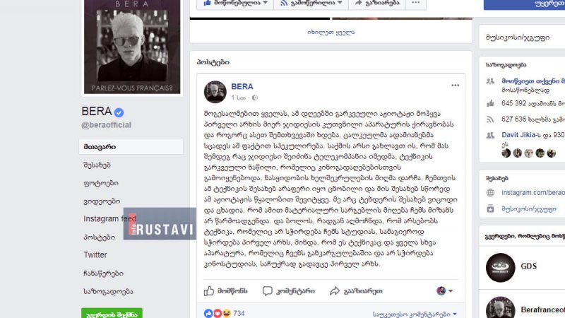 რეპერი ბერა ივანიშვილი საზოგადოებრივი მაუწყებლის ტენდერს გამოეხმაურა და ფეისბუქის საკუთარ გვერდზე დაწერა - "მოგესალმებით ყველას, ამ დღეებში გარკვეული აჟიოტაჟი მოჰყვა პირველი არხის მიერ ჯიდიესის კუთვნილი აპარატურის ქირავნობას და როგორც ასეთ შემთხვევაში ხდება, ცალკეულმა ადამიანებმა სცადეს ამ ფაქტით სპეკულირება. საქმის არსი გახლავთ ის, რომ მას შემდეგ რაც ჯიდიესი შეიძინა ტელეკომპანია იმედმა, ტექნიკის გარკვეული ნაწილი, რომელიც კინოგადაღებებისთვის გამოიყენებოდა, ნასყიდობის ხელშეკრულების მიღმა დარჩა. ჩემთვის ამ ტექნიკის შესახებ არაფერი იყო ცნობილი და მის შესახებ სწორედ ამ აჟიოტაჟის წყალობით შევიტყვე. მე არც ტენდერის შესახებ ვიცოდი და ცხადია, რომ ამით მატერიალური სარგებლის მიღება ჩემს მიზანს არ წარმოადგენდა. და ბოლოს, რადგან აღმოჩნდა, რომ არსებობს ტექნიკა, რომელიც არ სჭირდება ჩემს სტუდიას, სამაგიეროდ სჭირდება პირველ არხს, მინდა, რომ ეს ტექნიკაც და ყველა სხვა აპარატურა, რომელიც ჩვენს განკარგულებაშია და არ სჭირდება კინოსტუდიას, საჩუქრად გადავცე პირველ არხს."