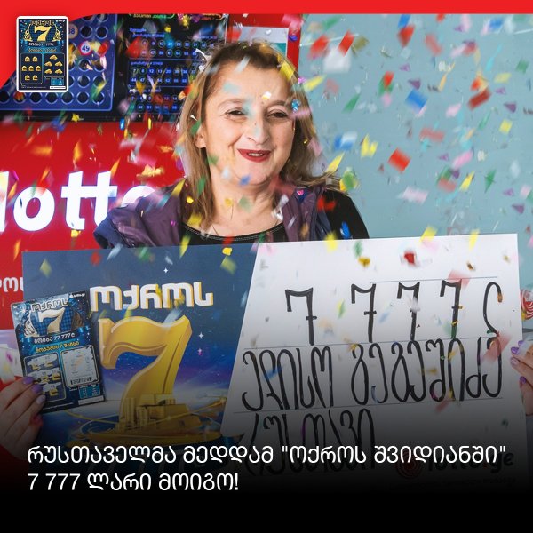 "მადონა გეგეშიძესთვის რაჭაში სტუმრობა განსაკუთრებულად იღბლიანი აღმოჩნდა, მან მომენტალურ ლატარია "ოქროს შვიდიანში" 7 777 ლარი მოიგო.