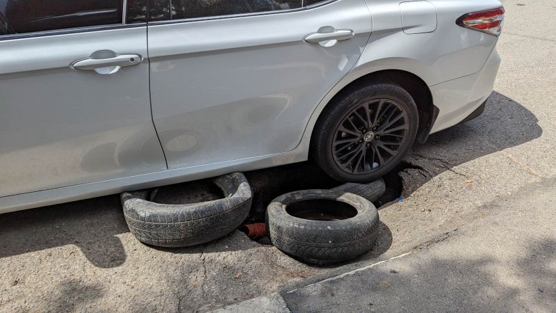 რუსთავში, მაჩაბელის ქუჩაზე მანქანა ორმოში ჩავარდა.