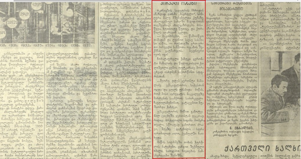 - მეგობრებო - წამოიწყო თამადამ და ღვინით სავსე სასმისი ასწია. რუსთავში ერთ-ერთი პირველი საბჭოთა ოჯახის შექმნას გაუმარჯოს. ბედნიერი იყოს იგი.