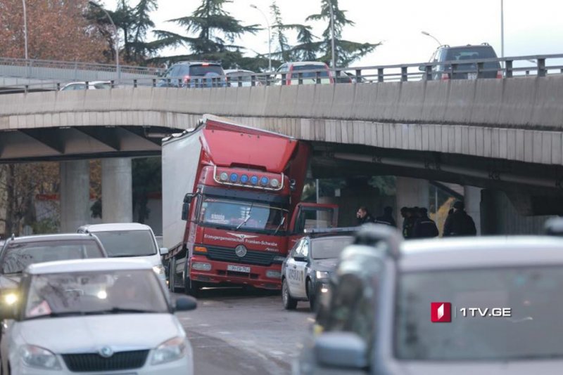 თბილისში, გმირთა მოედანზე სატვირთო ავტომობილი ესტაკადის ქვეშ გაიჭედა. არსებული ინფორმაციით, მძღოლმა ესტაკადის სიმაღლე ვერ გათვალა.