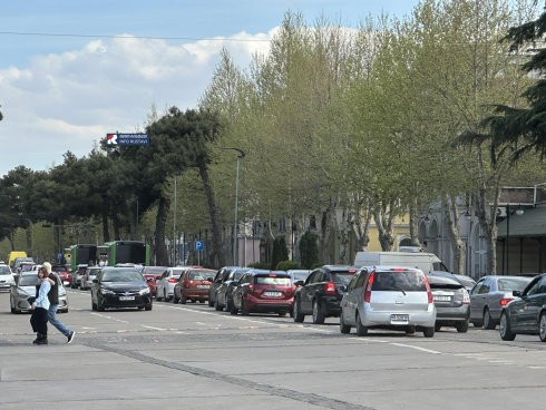 რუსთავში ცენტრალური ხიდიდან კოსტავას გამზირამდე საცობია.