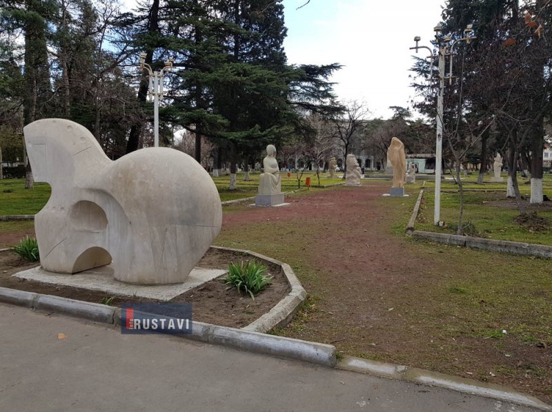 მუნიციპალური თეატრის წინ არსებული სკვერი შეიძლება ითქვას რომ ქალაქის ერთერთი ძვირადღირებული სკვერია. საკმაოდ მცირე ფართობზე 12 სკულპტურა არის განთავსებული, მათი დამზადება კი სიმპოზიუმის ფარგლებში მოხდა. აღსანიშნავია რომ პირველი სიმპოზიუმისთვის რომელიც 2016 წელს ჩატარდა ქალაქის ბიუჯეტიდან 72 000 ლარი, ხოლო 2017 წელს გამართული სიმპოზიუმისთვის კი 177 000 ლარი გამოიყო. 2015 წელს სიმპოზიუმის ფარგლებში 9 სკულპტურა შეიქმნა, იმის გამო რომ არ ჰქონდათ შერჩეული განთავსების მისამართი, ძეგლები წელიწადზე მეტი მერიის წინ იდგა, 2016 წელს კი დამატებით კიდევ 11 სკულპტურა შეიქმნა. სკულპტურების მისამართებს დიდხანს ეძებდნენ, ბოლოს ქალაქის რამდენიმე ადგილზე მიმოფანტეს, 12 ქანდაკებას კი თავი მოუყარეს და თეატრის წინ სკვერში დადგეს. ამ მომენტისთვის 1 ნამუშევრისთვის მისამართი ჯერ კიდევ არ გამოუძებნიათ, რკინის კვერცხი ჯერ ისევ იქ არის სადაც მისმა ავტორმა დაამზადა.