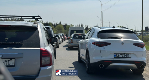 რუსთავის სასაფლაოზე მისასვლელ გზაზე საავტომობილო საცობია.