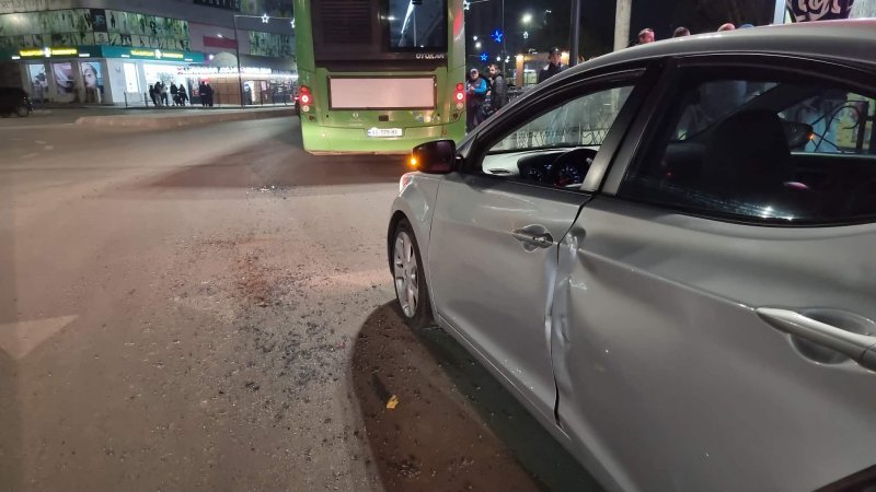 "ინფო რუსთავის" ინფორმაციით გაჩერებული "ჰიუნდაის" მარკის ავტომობილის მგზავრი მანქანიდან გადმოვიდა რა დროსაც კარი მოძრავი ავტობუსის კარს მოხვდა.