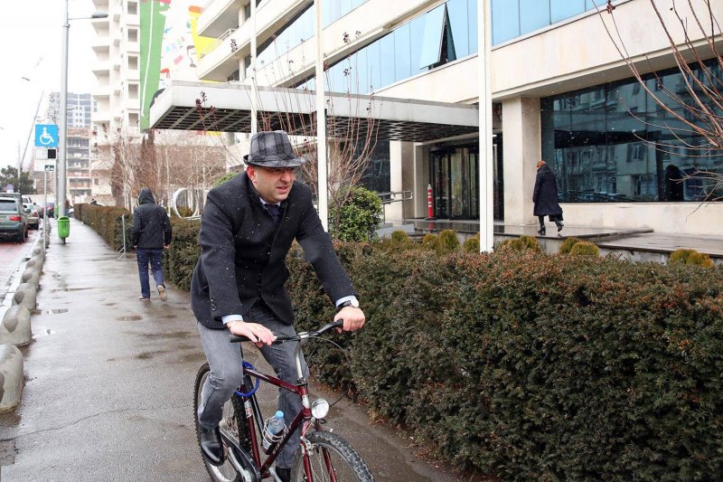 თბილისის მერიის ტრანსპორტის საქალაქო სამსახურის უფროსი ოფისიდან მერიაში საკუთარი ველოსიპედით დადის.