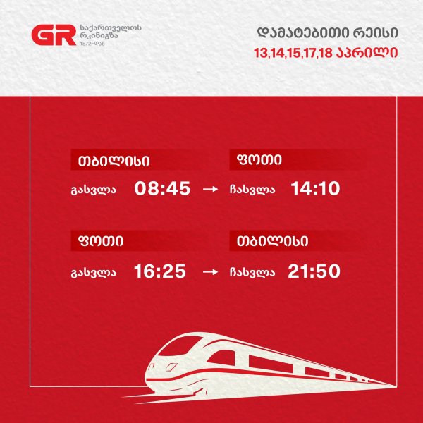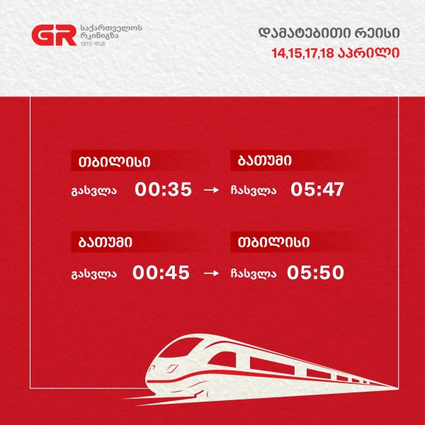 მათი ცნობით, დამატებითი რეისები ინიშნება 14-დან 18 აპრილის ჩათვლით ბათუმის მიმართულებით.