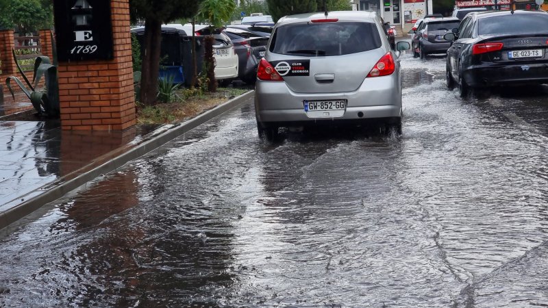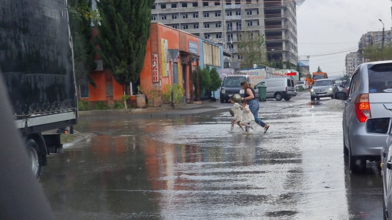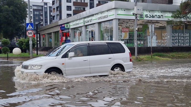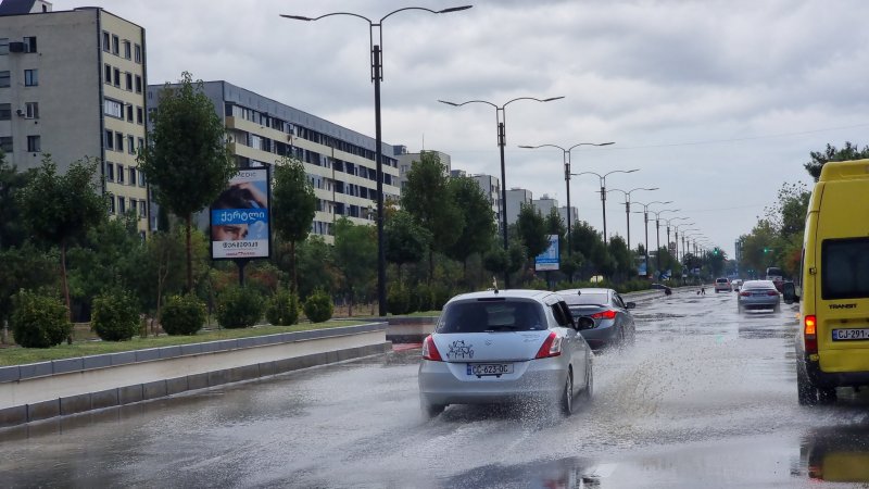ნახევარსაათიანი, ინტენსიური წვიმის შემდეგ მდგომარეობა რუსთავის ქუჩებში.